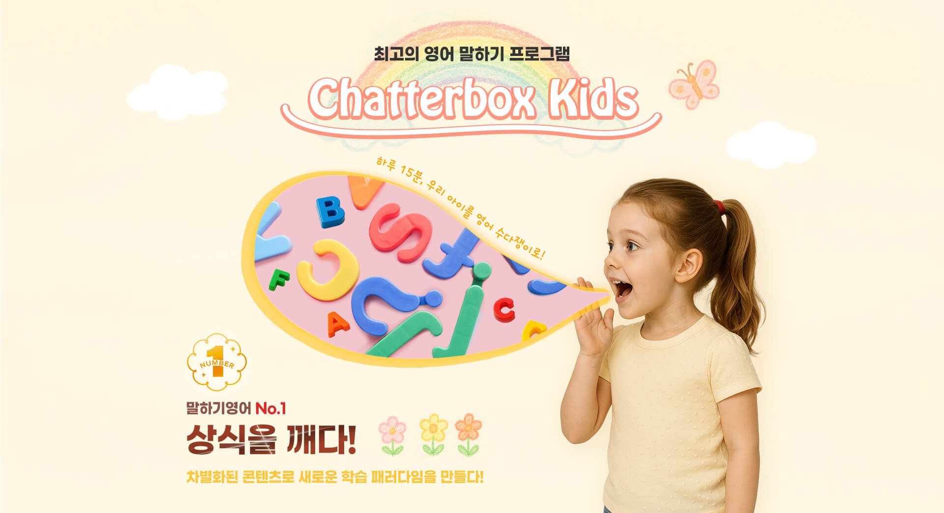“채터박스 키즈”의 3~4년 학습을 통해 일상 생활에서 사용하는 어휘와 문장 패턴을 자유롭게 말할 수 있습니다.