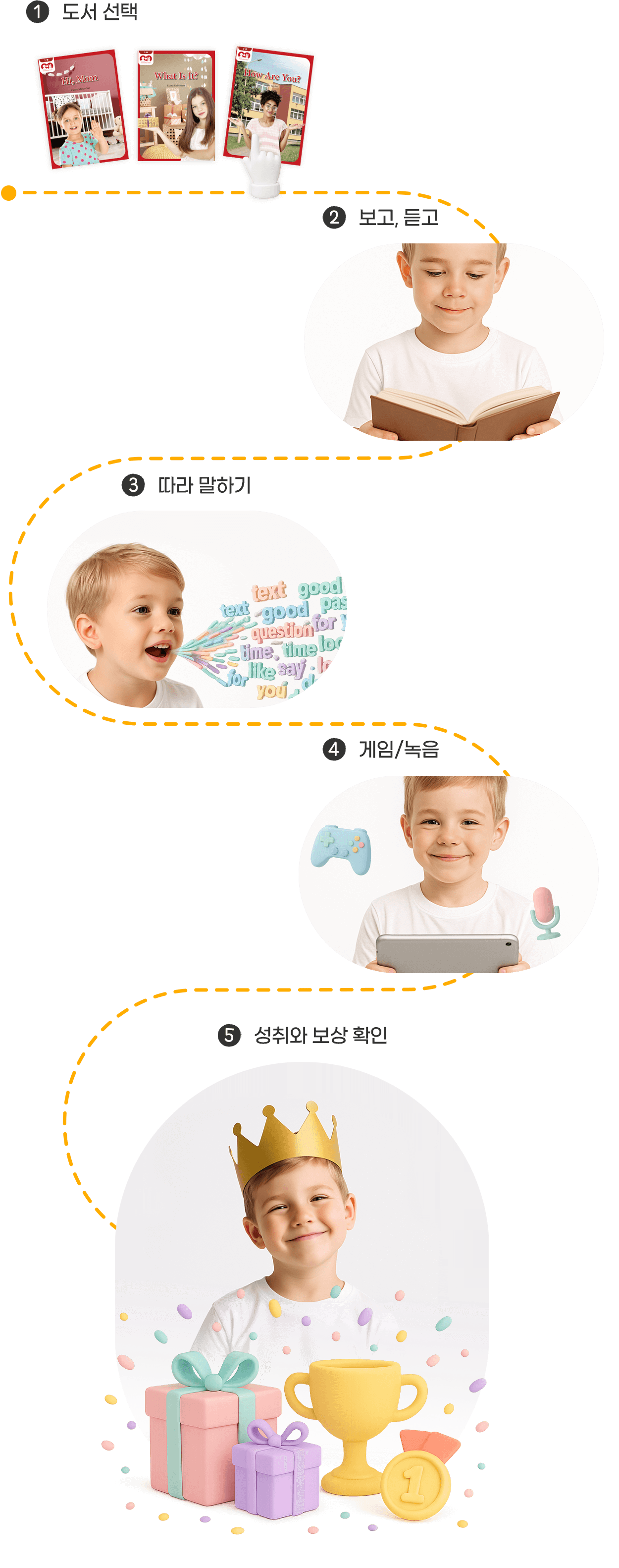 연령별 인지능력, 언어 발달상황을 고려하여, 쉽고 재미있게 학습 할 수 있는 구성으로 되어 있습니다.